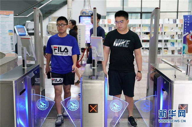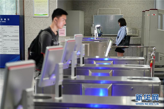 9月4日,西北工業(yè)大學學生“刷臉”進出圖書館。