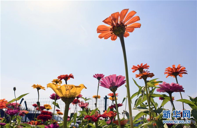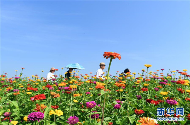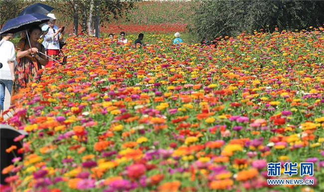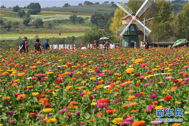 9月4日,長春市蓮花山生態(tài)旅游度假區(qū)花田里鮮花綻放。
