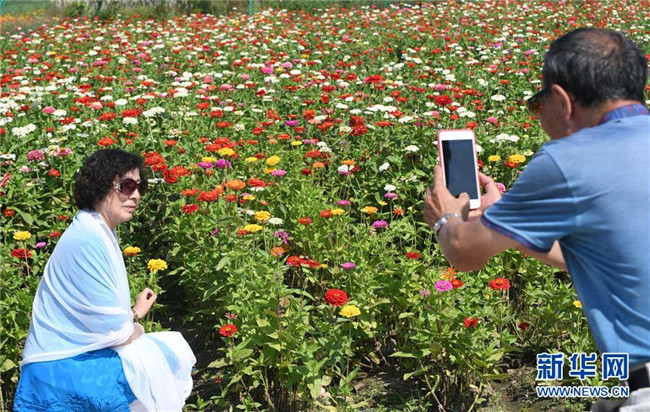 9月4日,游客在長春市蓮花山生態(tài)旅游度假區(qū)花田里賞花。