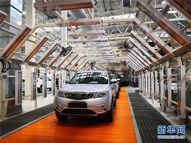 這是在白俄羅斯首都明斯克東北方向50公里處的白俄羅斯吉利全散件汽車制造廠總裝車間拍攝的準備下線的汽車(2018年12月8日拍攝)。 新華社記者 張若玄 攝