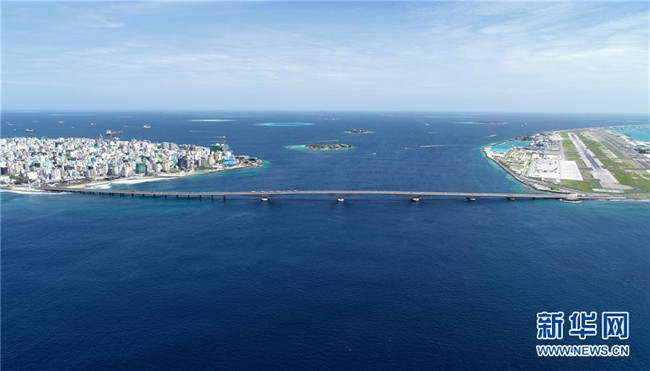 這是8月30日在馬爾代夫航拍的連接首都馬累和機場島的中馬友誼大橋。新華社發(fā)(王明亮攝)