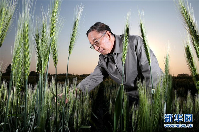 李振聲院士在中國科學(xué)院遺傳與發(fā)育生物學(xué)研究所農(nóng)業(yè)資源研究中心南皮生態(tài)農(nóng)業(yè)試驗(yàn)站(中科院南皮站)的試驗(yàn)田里(2014年5月5日攝)。新華社記者 金立旺 攝