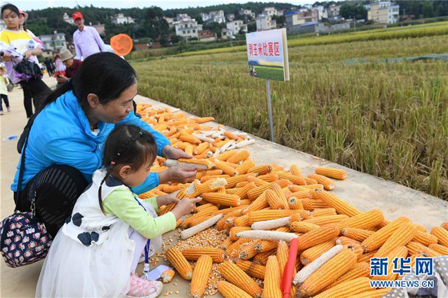 9月15日,游客在云南尋甸回族彝族自治縣七星鎮(zhèn)魯古村體驗剝玉米。