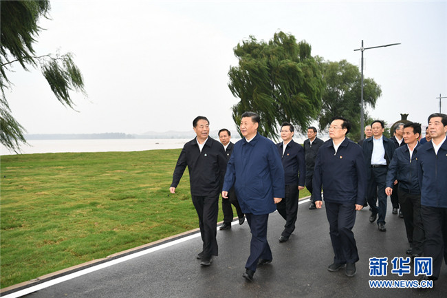 9月18日上午,中共中央總書記、國家主席、中央軍委主席習近平在鄭州主持召開黃河流域生態(tài)保護和高質量發(fā)展座談會并發(fā)表重要講話。這是座談會前,習近平于17日下午在鄭州黃河國家地質公園,沿黃河岸邊步行察看周邊環(huán)境,了解沿黃地區(qū)生態(tài)保護、水資源利用、堤防建設和防洪形勢等情況。 新華社記者 謝環(huán)馳 攝