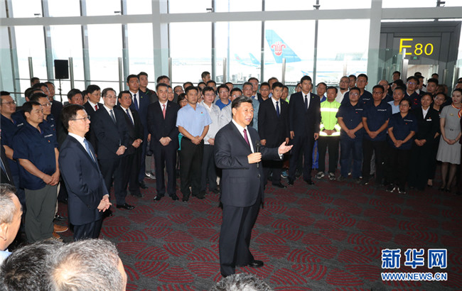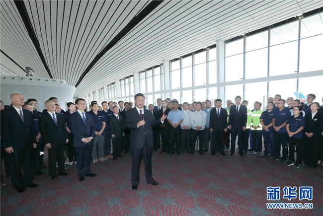 習(xí)近平強(qiáng)調(diào),共和國的大廈是靠一塊塊磚壘起來的,人民是真正的英雄。大興國際機(jī)場(chǎng)體現(xiàn)了中國人民的雄心壯志和世界眼光、戰(zhàn)略眼光,體現(xiàn)了民族精神和現(xiàn)代水平的大國工匠風(fēng)范。他希望廣大建設(shè)者在新的征程上再接再厲、再立新功!