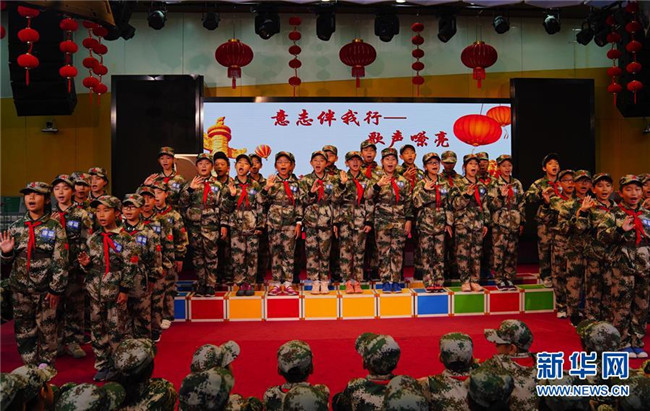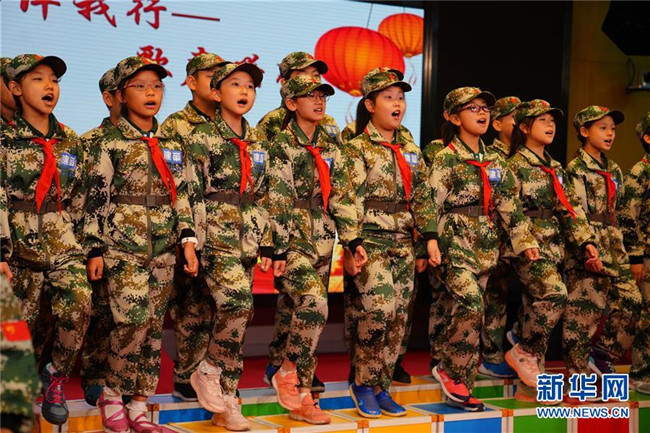 當日,北京市建華實驗學(xué)校小學(xué)部舉行“意志伴我行——歌聲嘹亮”紅色歌曲大合唱活動。師生們在歌聲中接受了一場愛國主義教育。 新華社記者 吳建路 攝