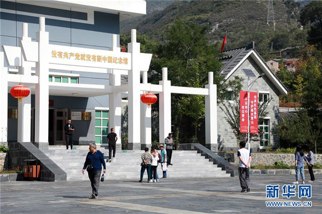 10月3日,在北京市房山區(qū)霞云嶺鄉(xiāng)堂上村,游客參觀沒有共產(chǎn)黨就沒有新中國紀(jì)念館。新華社記者王君璐攝
