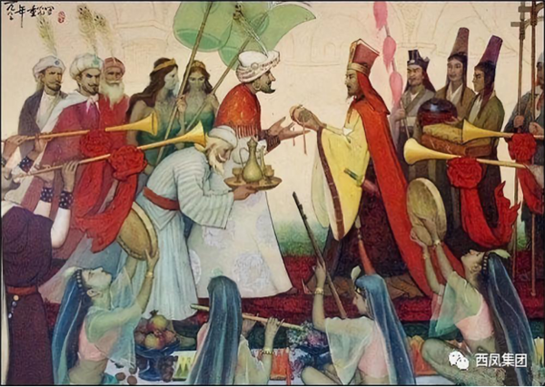 酒除了是國家祭祀必不可少的重要部分外,也在商業(yè)賦稅和人們情感交流中承擔(dān)著重要地位。陜西西安(古長安)是古絲綢之路的起點(diǎn),鳳翔是古絲綢之路的重要驛站,西鳳酒自漢代以來就作為饋贈友邦、域外交流的國禮。史書記載,唐儀鳳(公元676年)年間的一個(gè)陽春三月,吏部侍郎裴行儉護(hù)送波斯王子泥涅師回國途中,行至鳳翔縣城以西的亭子頭村附近,發(fā)現(xiàn)柳林鎮(zhèn)窖藏陳酒香氣將五里地外亭子頭的蜜蜂蝴蝶醉倒的奇景,即興吟詩贊嘆曰:“送客亭子頭,蜂醉蝶不舞;三陽開國泰,美哉柳林酒”,并以此詩贈送王子。