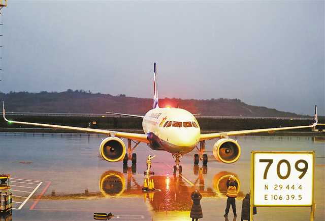 2018年12月30日凌晨,利用中新(重慶)互聯(lián)互通項(xiàng)目和自由貿(mào)易疊加優(yōu)勢(shì),重慶航空引進(jìn)的第五架空客A320neo飛機(jī)抵達(dá)江北國(guó)際機(jī)場(chǎng)。 (重慶航空供圖)