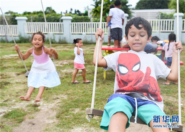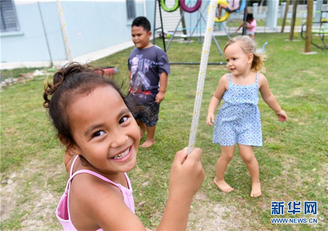 10月26日,在庫克群島首都阿瓦魯阿的阿皮尼考學(xué)校,幼兒園的孩子在操場上玩耍。