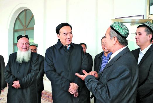 11月8日,自治區(qū)黨委書記陳全國(guó)在吐魯番市調(diào)研。 這是陳全國(guó)在高昌區(qū)紅星片區(qū)戈壁社區(qū)清真寺了解宗教活動(dòng)開展情況。崔志堅(jiān)攝