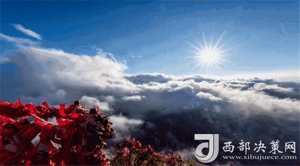 夜幕自東方悄然隱退,晨曦初露,漸漸霞光瑰麗,云源奔涌。瞬間,一輪火球噴薄而出,繼而光芒四射,氣象萬(wàn)千,整個(gè)世界大放光明,現(xiàn)場(chǎng)的游人身心為之一振。待云霧散盡,蒼松翠柏,則更加清麗悅目,美妙神奇。