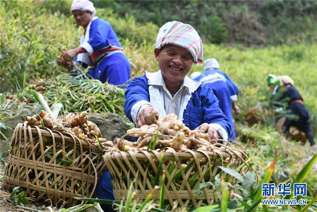 近年來,廣西賀州市平桂區(qū)努力培育扶貧產(chǎn)業(yè),在6個土瑤聚居的深度貧困村發(fā)展大肉姜種植,帶動當(dāng)?shù)厝罕娒撠氈赂?。目前,這6個深度貧困村大肉姜種植面積已達(dá)3166畝,實現(xiàn)了“戶均兩畝姜”的發(fā)展目標(biāo),大肉姜已成為當(dāng)?shù)厝罕娫鍪盏闹匾a(chǎn)業(yè)。 新華社記者 陸波岸 攝