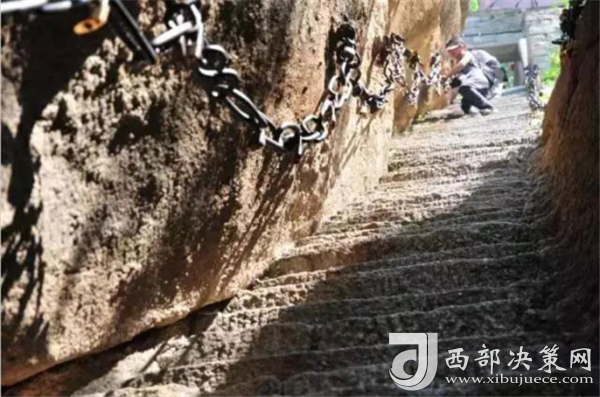 長空棧道位于華山南峰東側(cè)山腰,是華山派第一代宗師元代高道賀志真為遠離塵世靜修成仙,在萬仞絕壁上鑲嵌石釘搭木椽而筑。長空棧道的盡頭便是思過崖。