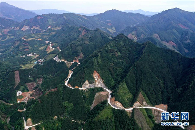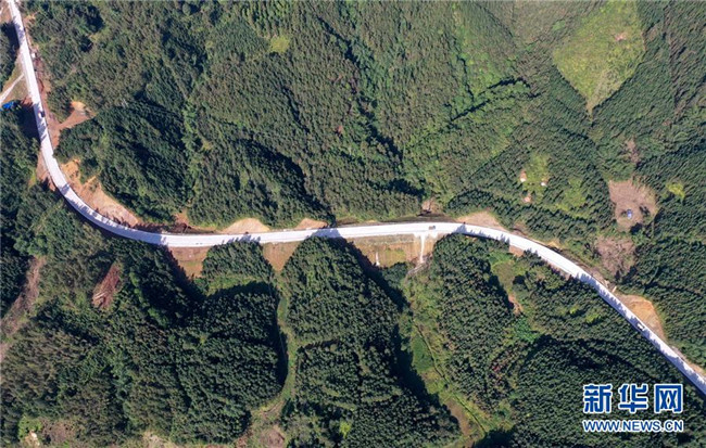 這是位于廣西融水苗族自治縣四榮鄉(xiāng)境內在建的羅融二級公路(11月19日無人機拍攝)。 新華社記者 黃孝邦 攝