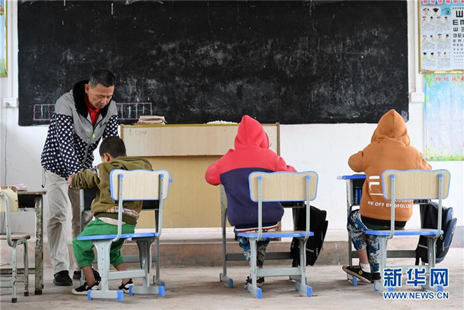 11月19日,在廣西上思縣那琴鄉(xiāng)中心小學逢通村教學點,梁志雄給學生上課。新華社記者陸波岸攝