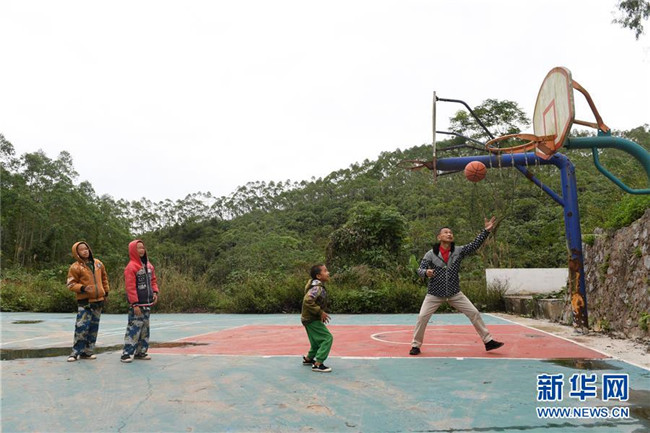 11月19日,在廣西上思縣那琴鄉(xiāng)中心小學逢通村教學點,梁志雄教學生打籃球。新華社記者陸波岸攝