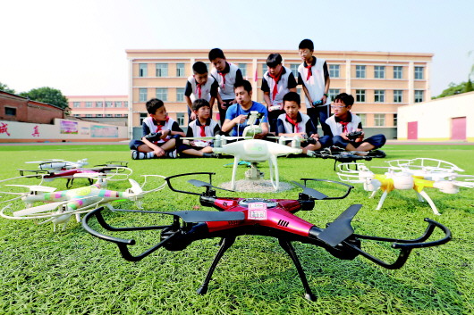 6月26日,河北省內(nèi)丘縣實(shí)驗(yàn)小學(xué)學(xué)生在參加無人機(jī)特色課程。近年來,該校推進(jìn)素質(zhì)教育,讓學(xué)生走出教室,參與到內(nèi)容豐富、形式多樣的特色教育活動(dòng)中。新華社記者 朱旭東 攝