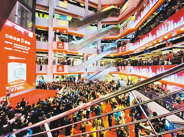 據(jù)了解,京東電器超級體驗店建筑面積近5萬平方米,足有7個足球場大小。消費者對該店特有的沉浸式體驗贊不絕口,其中大部分消費者在對心儀的商品充分體驗后當即掃碼下單。比如一款單價超過8萬元的三星85英寸8K電視,在開業(yè)一周內(nèi)就售出一臺,單價超過1萬元的火星人集成灶一周內(nèi)成交近百臺,上萬元的大疆無人機更是賣到斷貨……