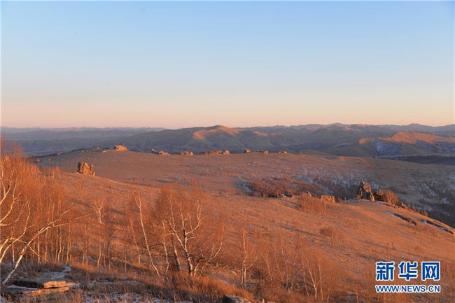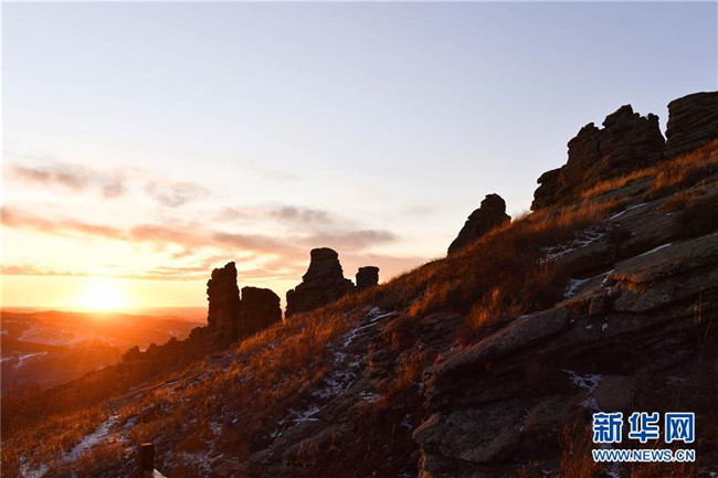 克什克騰石陣景區(qū)位于內(nèi)蒙古赤峰市克什克騰旗,是國家5A級(jí)景區(qū)。冬日黃昏,在落日和晚霞的映襯下,克什克騰石陣景區(qū)一派壯美景象。 新華社記者 徐欽 攝