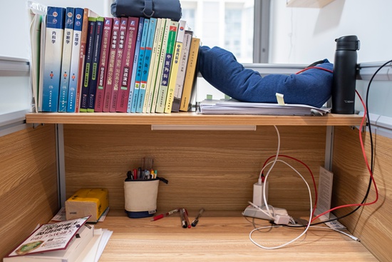 11月23日,北京望京一家自習(xí)室的座位。連續(xù)使用自習(xí)室的顧客,可以在這里儲存自己的物品。