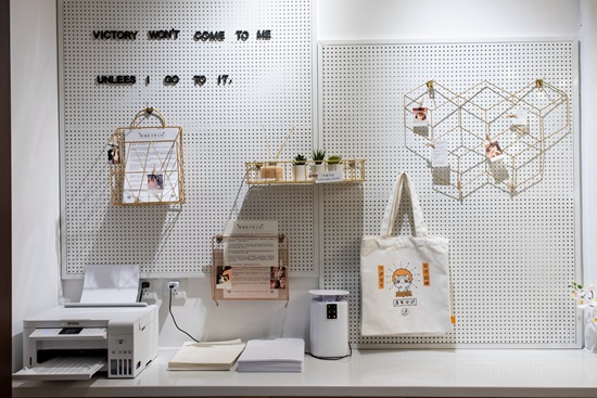 11月24日,北京定福莊一家自習(xí)室一角。這里為顧客提供打印服務(wù)和免費(fèi)的紙張,一旁展示的是店家設(shè)計的帆布包。