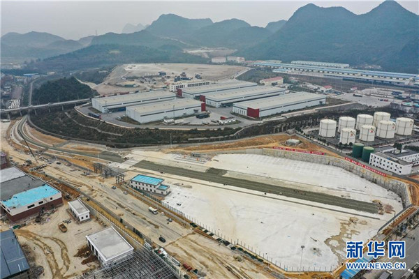 12月17日,中鐵八局建設者們在改貌鐵路口岸施工(無人機拍攝)。由中鐵八局承建的貴州省首個鐵路口岸——貴陽改貌鐵路口岸即將全面進入竣工驗收階段。據(jù)悉,貴陽改貌鐵路口岸為一級開放口岸,建成投運后將成為中歐班列的場站,年貨運吞吐量將達120萬噸,將進一步促進貴州省對接“一帶一路”和“國際陸海貿(mào)易新通道”,為貴州建設內(nèi)陸開放型經(jīng)濟試驗區(qū)提供有力支撐。新華社記者劉續(xù)攝