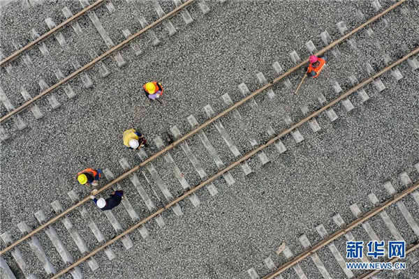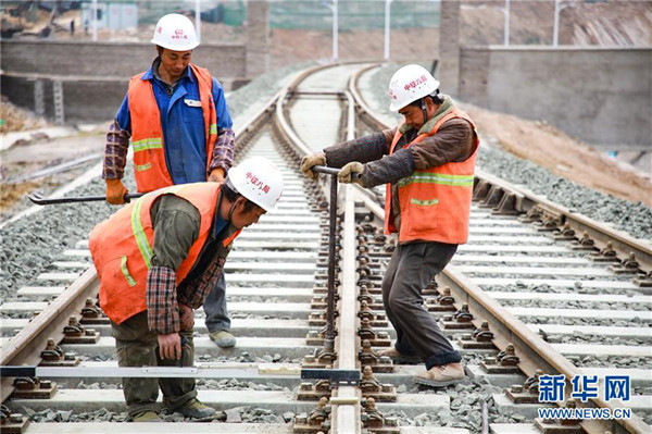 12月17日,中鐵八局建設者在改貌鐵路口岸施工。由中鐵八局承建的貴州省首個鐵路口岸——貴陽改貌鐵路口岸即將全面進入竣工驗收階段。據(jù)悉,貴陽改貌鐵路口岸為一級開放口岸,建成投運后將成為中歐班列的場站,年貨運吞吐量將達120萬噸,將進一步促進貴州省對接“一帶一路”和“國際陸海貿(mào)易新通道”,為貴州建設內(nèi)陸開放型經(jīng)濟試驗區(qū)提供有力支撐。新華社記者劉續(xù)攝