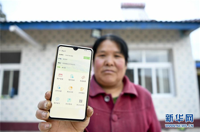 在寧夏固原市彭陽縣白陽鎮(zhèn)白岔村,村民展示可以“手機(jī)買水”的界面(10月11日攝)。  新華社記者 馮開華 攝
