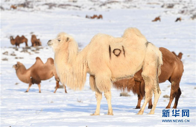12月30日,牧民在新疆吉木乃縣“萬駝園”放駱駝。新華社記者 沙達提 攝
