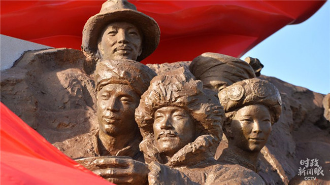 △鄂豫皖蘇區(qū)首府革命博物館前英雄廣場上的主題雕塑:啟航新長征。