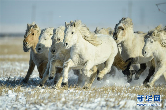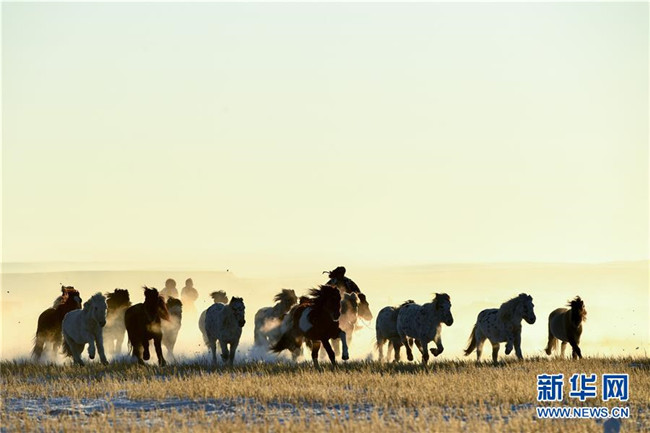 當(dāng)日,內(nèi)蒙古自治區(qū)錫林浩特市鳳凰馬場進(jìn)行了一場馴馬活動。騎手們趕著馬群,在白茫茫的草原上奔跑,景象壯觀,吸引了不少游客和攝影愛好者前來觀賞。 新華社記者 劉磊 攝