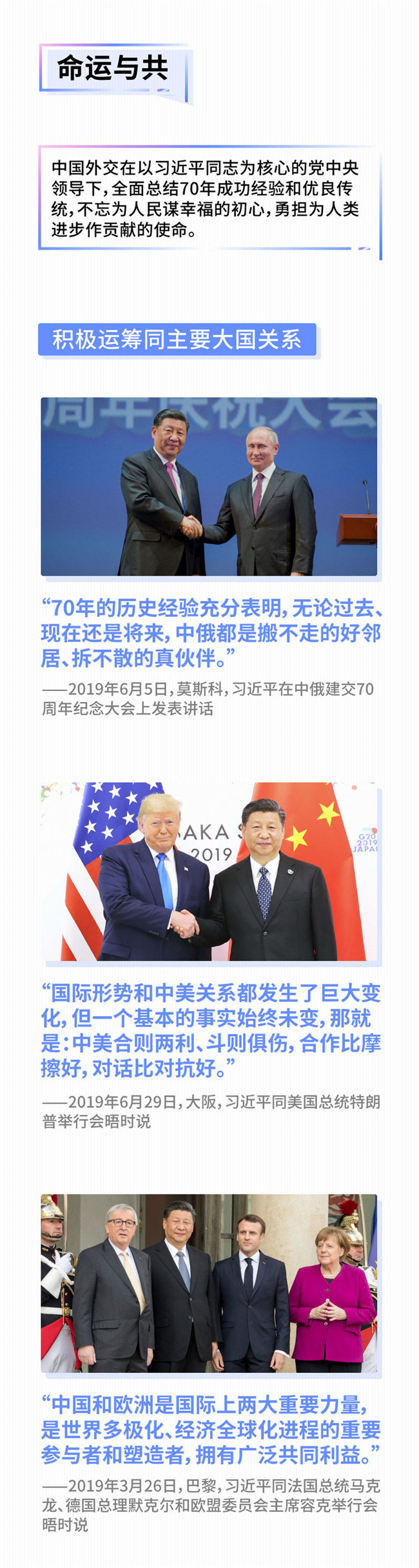 從歐洲亮麗開場(chǎng),在歐洲圓滿收官。2019年,習(xí)近平主席先后到訪意大利、摩納哥、法國、希臘4國,迎接德、法、意等歐洲主要大國領(lǐng)導(dǎo)人來訪,中國-中東歐國家合作實(shí)現(xiàn)首次擴(kuò)員,中歐地理標(biāo)志協(xié)定談判按期完成……世界兩大文明、兩大力量之間的交往積極活躍而富有成果。