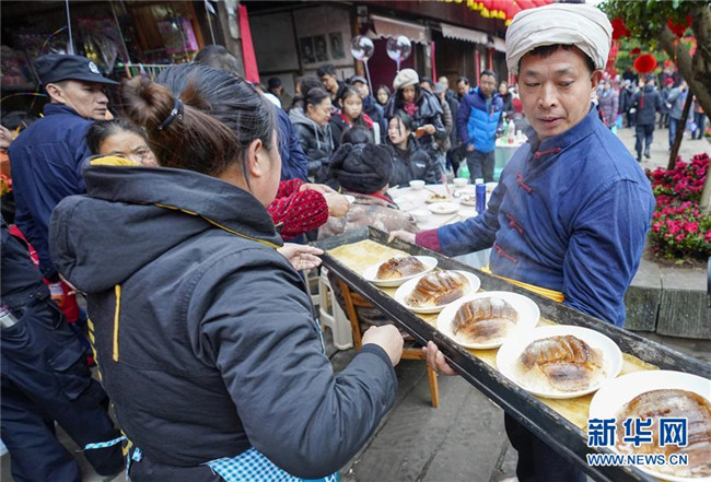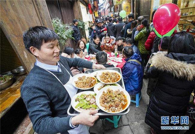 重慶:吃“千米長(zhǎng)宴”品古鎮(zhèn)年味