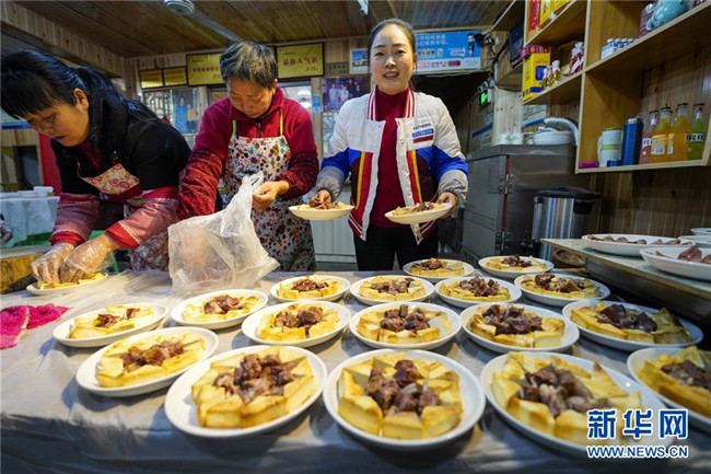 1月18日,中山古鎮(zhèn)的一戶(hù)商家在“千米長(zhǎng)宴”開(kāi)席前準(zhǔn)備菜品。當(dāng)日中午,伴隨著一聲“開(kāi)席嘍”,一年一度的“千米長(zhǎng)宴”在重慶市江津區(qū)中山古鎮(zhèn)舉行。噴香的煙熏豆腐、軟糯的夾燒肉、可口的石板糍粑……800余桌年味十足的特色美食,吸引了兩萬(wàn)多名游客前來(lái)體驗(yàn)傳統(tǒng)民俗,感受“一雙筷子吃遍一條街”的暢快淋漓。中山古鎮(zhèn)自古就有“千米匯長(zhǎng)宴萬(wàn)人祈福祉”的習(xí)俗。每年春節(jié)期間,古鎮(zhèn)老街居民都會(huì)在千米長(zhǎng)街上大擺“百家宴”,祝福生意興隆、家業(yè)興旺、風(fēng)調(diào)雨順、五谷豐登。新華社記者劉潺攝