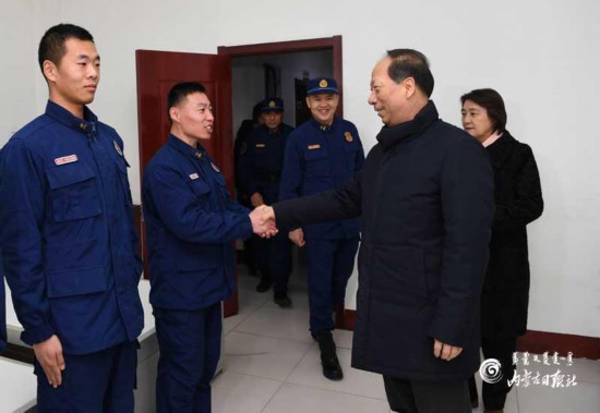 在賽罕區(qū)消防救援大隊二中隊,石泰峰、布小林來到消防救援裝備間、消防員宿舍,認真檢查消防救援裝備,與執(zhí)勤隊員親切握手交流,了解春節(jié)期間執(zhí)勤備勤情況。他說,春節(jié)期間人流物流密集,居民用火、用電多,是火災易發(fā)多發(fā)期,一定要倍加注意消防安全,格外加強應(yīng)急值守,枕戈待旦、快速反應(yīng),全力做好消防安全保衛(wèi)各項工作,確保春節(jié)期間萬無一失,當好“人民群眾安全守護神”。