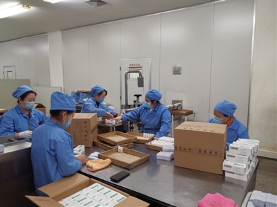 圖為青海制藥廠車間工人正在進(jìn)行包裝