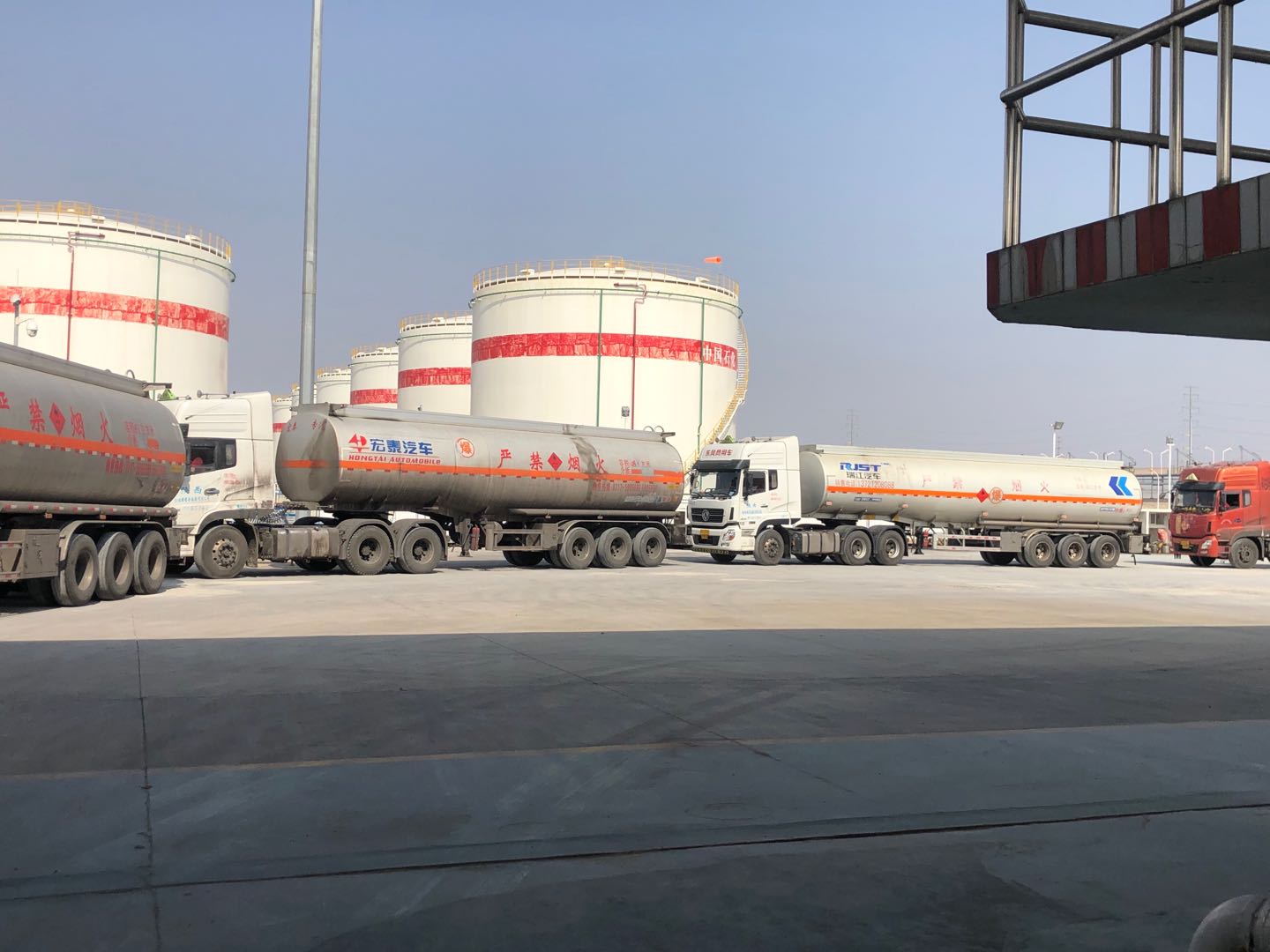 已近零時,空曠的付油區(qū)氣溫早已降至零攝氏度以下。此時,油庫的發(fā)油作業(yè)依然沒有停止……油庫的幾名工友,頭戴紅色安全帽、身著藍(lán)色工裝,對入庫油庫油車進(jìn)行安全檢查,驗(yàn)票員仔細(xì)核對著票據(jù)信息,引導(dǎo)車輛正確???,不斷提示駕駛員注意操作安全。