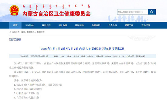 內(nèi)蒙古自治區(qū)衛(wèi)生健康委員會(huì)官網(wǎng)截圖