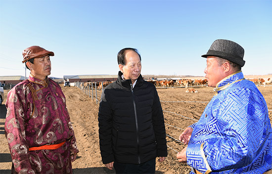3月23日,自治區(qū)黨委書記、人大常委會主任石泰峰來到赤峰市克什克騰旗達(dá)來諾日鎮(zhèn)崗更嘎查西門塔爾牛養(yǎng)殖專業(yè)合作社,了解帶動已脫貧戶穩(wěn)定長效增收情況。內(nèi)蒙古日報(bào)社融媒體記者 袁永紅 攝