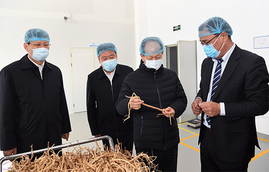 實(shí)現(xiàn)穩(wěn)定脫貧,發(fā)展產(chǎn)業(yè)是根本之策。石泰峰深入佰惠生新農(nóng)業(yè)、恒光大藥業(yè)、德青源農(nóng)業(yè)、宏發(fā)牧業(yè)、安琪酵母、恒都農(nóng)業(yè)等企業(yè)和部分專業(yè)合作社,考察特色產(chǎn)業(yè)發(fā)展、農(nóng)企利益聯(lián)結(jié)及帶貧促貧成效。當(dāng)?shù)匾劳旋堫^企業(yè)和專業(yè)合作社帶動,因地制宜發(fā)展種養(yǎng)加工業(yè),探索走出了“甜菜富民”“中藥富民”“金雞富民”等帶貧減貧特色路。七合堂村通過懂技術(shù)、善經(jīng)營的帶頭人引領(lǐng)發(fā)展野果產(chǎn)業(yè),促進(jìn)了群眾脫貧。石泰峰說,企業(yè)發(fā)展好了,扶貧效益才會更好,同時也能為鄉(xiāng)村振興提供有力支撐。種養(yǎng)殖業(yè)發(fā)展起來了,還可以“接二連三”,搞加工、搞旅游。他勉勵企業(yè)要提升規(guī)?;?jīng)營水平,不斷延伸產(chǎn)業(yè)鏈條,提高產(chǎn)品附加值,打造品牌,拓展市場,構(gòu)建穩(wěn)固利益聯(lián)結(jié)機(jī)制,讓發(fā)展成果更好惠及廣大群眾。