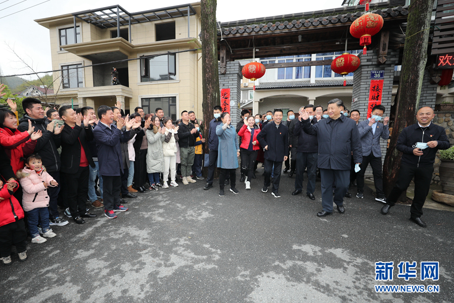 3月29日至4月1日,中共中央總書(shū)記、國(guó)家主席、中央軍委主席習(xí)近平在浙江考察。這是3月30日,習(xí)近平在湖州市安吉縣天荒坪鎮(zhèn)余村考察時(shí),向村民們揮手致意。 新華社記者 鞠鵬 攝