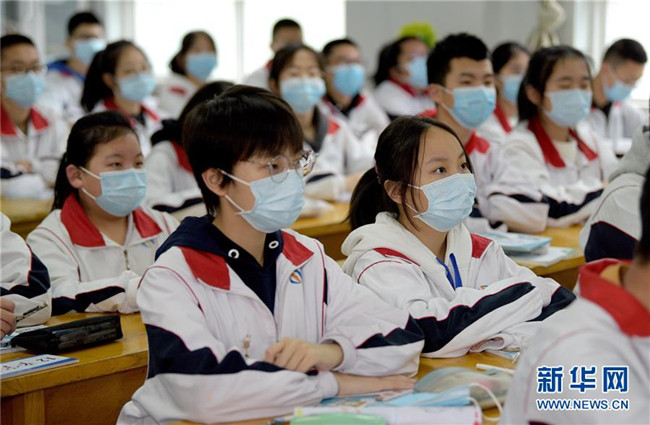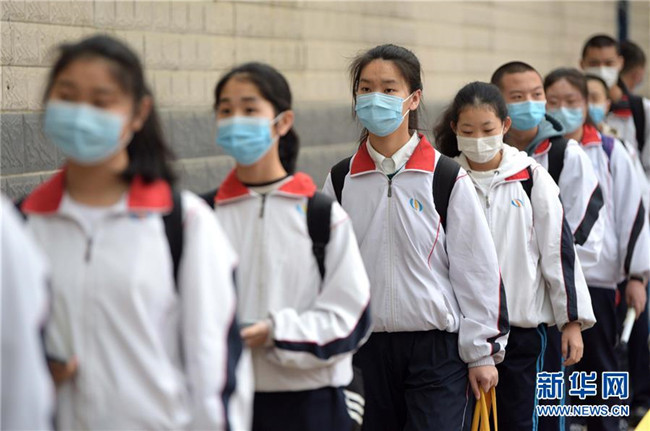 當日,陜西初三年級35.46萬學生、中等職業(yè)學校畢業(yè)年級5.83萬學生返校復課。 新華社記者 劉瀟 攝