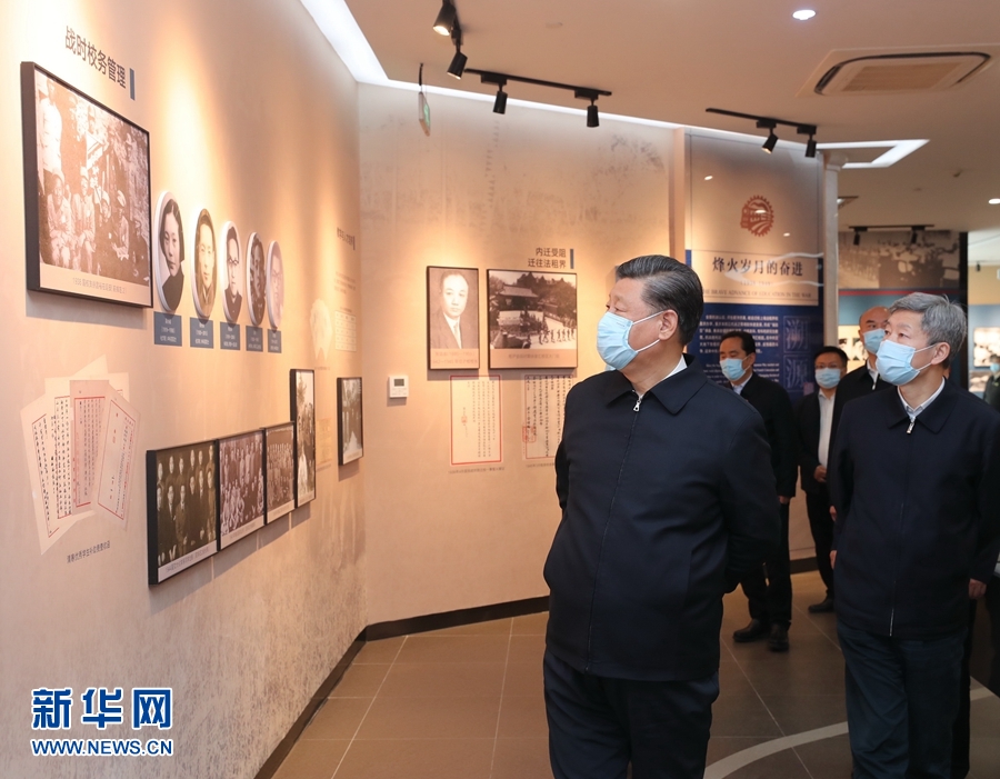 4月20日至23日,中共中央總書記、國(guó)家主席、中央軍委主席習(xí)近平在陜西考察。這是4月22日,習(xí)近平在西安交通大學(xué)交大西遷博物館參觀。 新華社記者 鞠鵬 攝