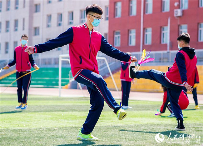 內(nèi)蒙古呼和浩特市第十二中學學生在課間進行體育鍛煉。