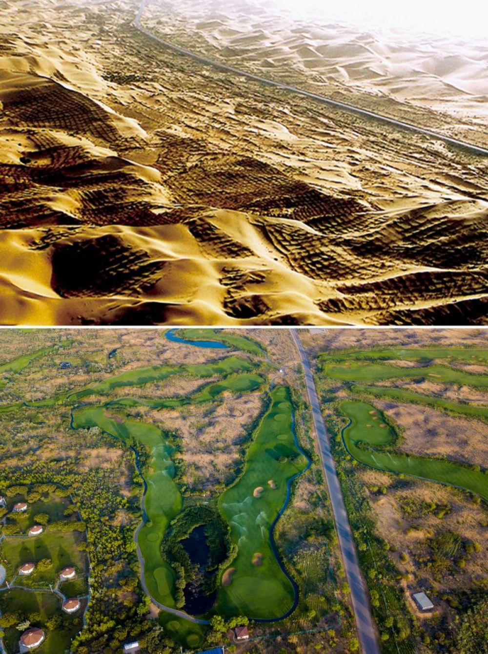 經過30余年的艱苦治理,中國第七大沙漠——內蒙古庫布其沙漠,從原是飛鳥難越的“死亡之海”,變?yōu)槿缃裆撤寰G谷交相輝映。