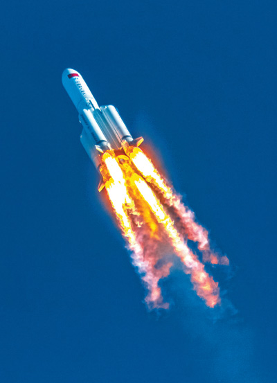 長(zhǎng)征五號(hào)B運(yùn)載火箭正在升空。陳 肖攝(人民視覺(jué))