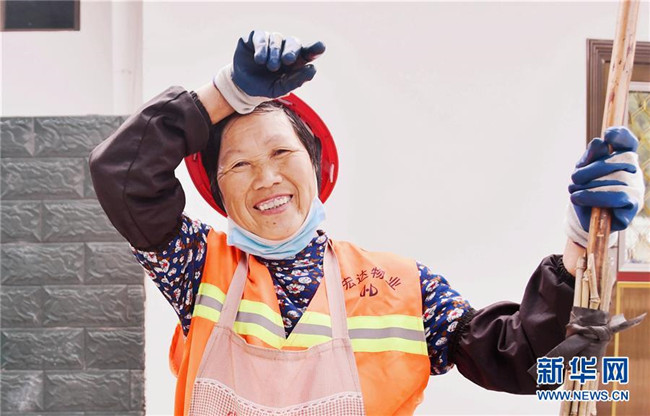 5月8日,湖南省江永縣瀟浦鎮(zhèn)永陽路,環(huán)衛(wèi)工人唐翠英面帶微笑在清掃間隙小憩。 當(dāng)日是世界微笑日。 新華社發(fā)(田如瑞 攝)