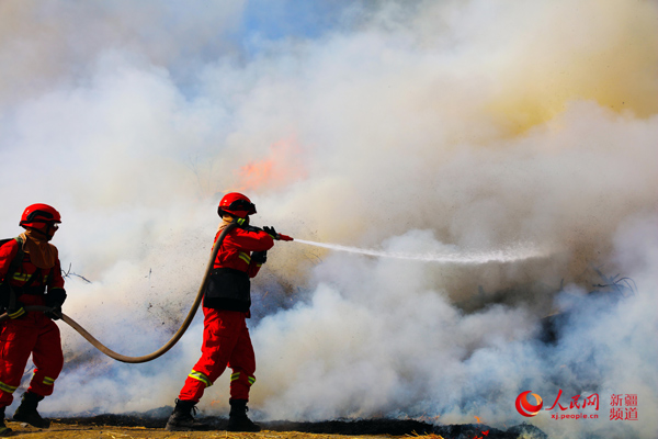 5月6日,新疆尼勒克古楊濕地公園,一場滅火演練正在進(jìn)行……