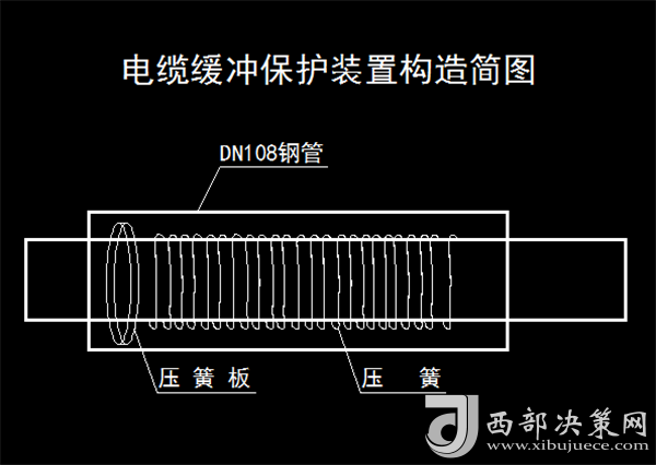 為了解決這一難題,該工區(qū)組織人員經過多次試驗研討后,決定將DN108鋼管作為緩沖裝置的外管,將加工好的壓板與中間軸焊接在一端做成壓簧盤,再將加工好的2寸法蘭盤焊接在DN108管一端,將壓簧放入DN108鋼管內,穿入中間軸。用加工好的2寸法蘭盤封閉DN108鋼管另一端,在中間軸的一端安裝加工好的電纜導向輪,并安裝在固定架上。雙電纜卡子固定電纜可根據使用長度調整導向輪,隨著梭車的行走方向而改變電纜方向,避免電纜彎曲打折;利用彈簧彈性,發(fā)揮緩沖作用,將拉力轉化為彈性勢能,減少對電纜的損害。